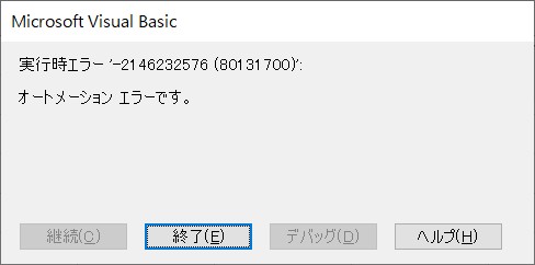 【実行時エラー’-2146232576(80131700)’:オートメーションエラー】