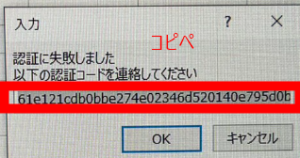立ち上げもしくは動作時にサーバー認証を行います。PC毎に認証コードが発行されますので、公式ラインまで文字列64文字を [すべてコピペして] お送り下さい。